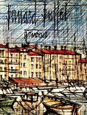 1952 - Bernard Buffet illustrates "Les Chants de Maldoror" written by Lautréamont. In the following years, the artist dedicates much of his time and attention to the creation of prints, lithographs or etchings. His work also including illustrated books such as: "Recherche de la Pureté" by Giono in1953, "La Voix Humaine" (En: The Human Voice) by Cocteau in1957, "Les Voyages Fantastiques" by Cyrano de Bergerac in 1958 and "Jeux de Dames" with poems by Baudelaire and Rimbaud in1970 etc.